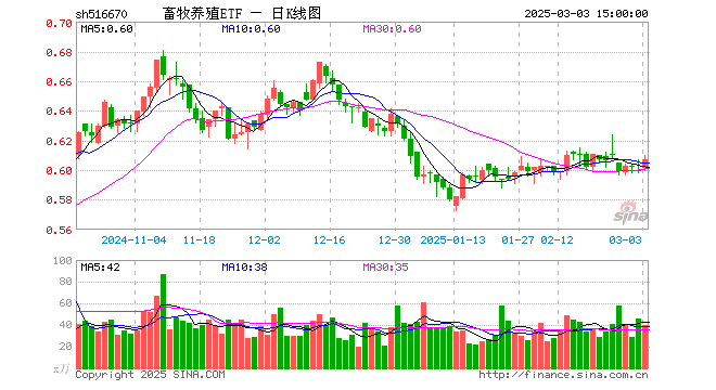 3月3日,畜牧养殖ETF(516670)涨1.17%,成交额2418.29万元。当日份额增加100.00万份,最新份额为10.88亿份,近20个交易日份额增加5200.00万份。最新资产净值计算值为6.60亿元。