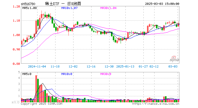 3月3日,稀土ETF(516780)涨2.18%,成交额4958.55万元。当日份额增加250.00万份,最新份额为7.16亿份,近20个交易日份额减少1.16亿份。最新资产净值计算值为7.69亿元。