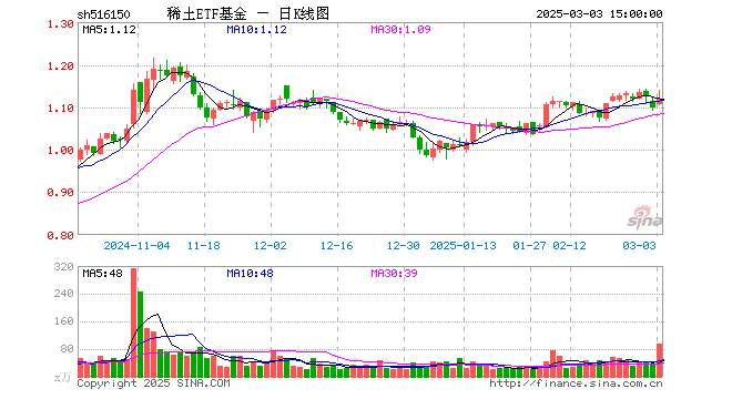 3月3日,稀土ETF基金(516150)涨2.00%,成交额1.08亿元。当日份额增加3950.00万份,最新份额为15.27亿份,近20个交易日份额减少8800.00万份。最新资产净值计算值为17.07亿元。