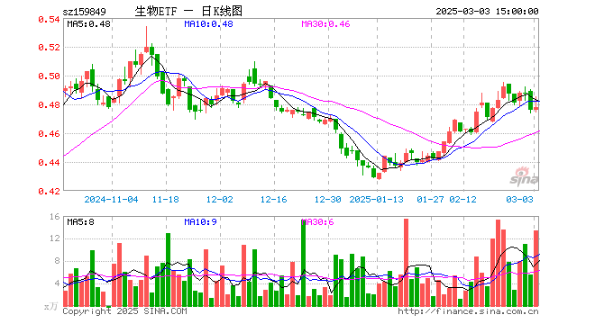 3月3日,生物科技指数ETF(159849)涨0.42%,成交额654.87万元。当日份额增加800.00万份,最新份额为1.62亿份,近20个交易日份额增加400.00万份。最新资产净值计算值为7748.41万元。