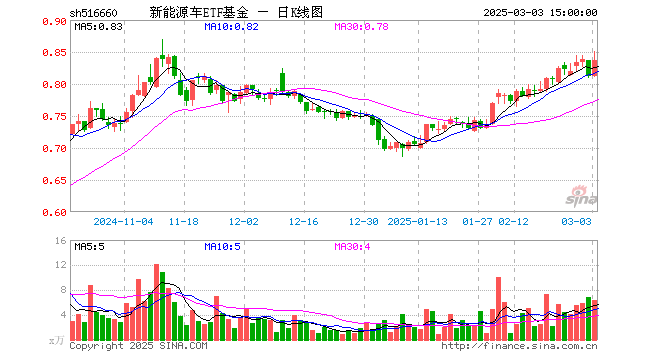 3月3日,新能源车ETF基金(516660)涨3.21%,成交额529.54万元。当日份额减少100.00万份,最新份额为4.49亿份,近20个交易日份额减少2100.00万份。最新资产净值计算值为3.76亿元。