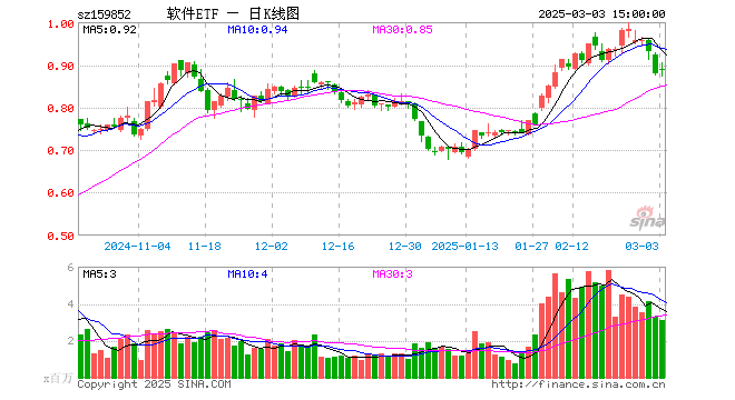 3月3日,软件ETF(159852)涨1.02%,成交额2.79亿元。当日份额减少4500.00万份,最新份额为32.73亿份,近20个交易日份额增加13.78亿份。最新资产净值计算值为29.06亿元。