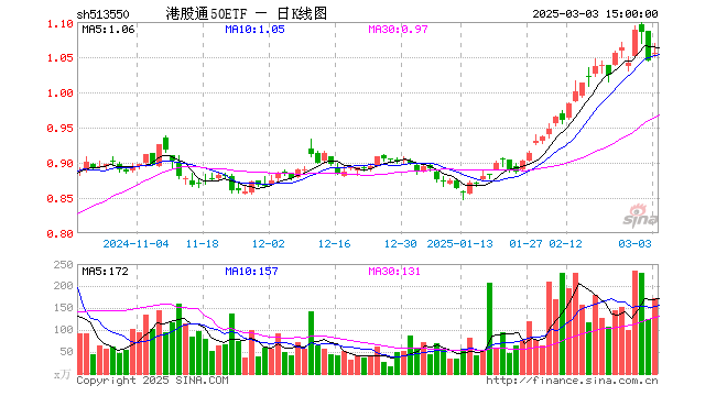 3月3日,港股通50ETF(513550)涨0.96%,成交额1.83亿元。当日份额减少100.00万份,最新份额为26.01亿份,近20个交易日份额减少3.29亿份。最新资产净值计算值为27.11亿元。