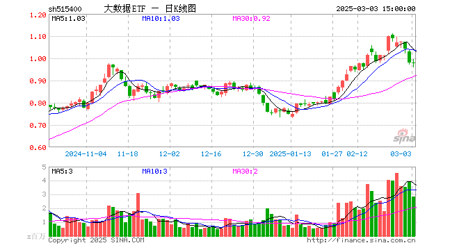 3月3日,大数据ETF(515400)涨0.00%,成交额2.80亿元。当日份额增加400.00万份,最新份额为20.98亿份,近20个交易日份额增加7.05亿份。最新资产净值计算值为20.48亿元。