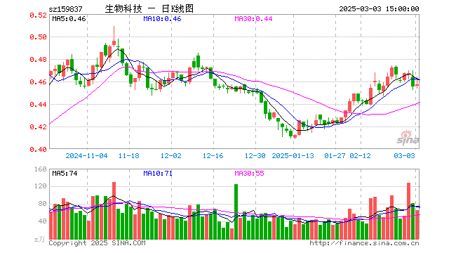 3月3日,生物科技ETF(159837)涨0.44%,成交额2987.44万元。当日份额减少1200.00万份,最新份额为28.40亿份,近20个交易日份额减少8300.00万份。最新资产净值计算值为12.97亿元。