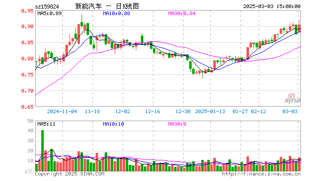 3月3日,新能车ETF(159824)涨3.43%,成交额1229.54万元。当日份额减少200.00万份,最新份额为2.08亿份,近20个交易日份额减少2400.00万份。最新资产净值计算值为1.88亿元。
