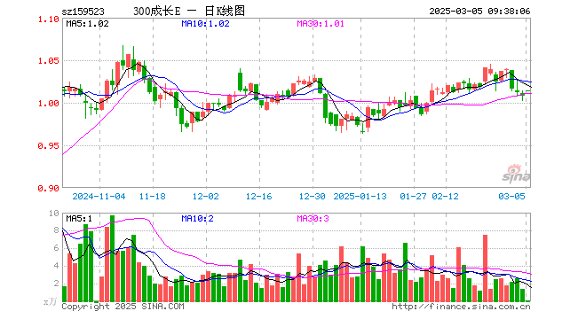 3月5日,沪深300成长ETF(159523)开盘涨0.60%,报1.014元。沪深300成长ETF(159523)重仓股方面,贵州茅台开盘涨0.13%,宁德时代涨0.00%,比亚迪涨0.63%,中国平安涨0.20%,海光信息跌0.36%,长江电力跌0.04%,东方财富跌0.13%,紫金矿业涨0.00%,寒武纪涨0.36%,中兴通讯跌0.03%。