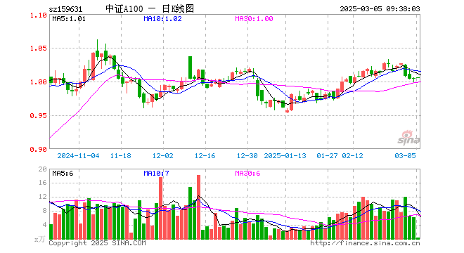 3月5日,中证A100ETF(159631)开盘涨0.10%,报1.006元。中证A100ETF(159631)重仓股方面,贵州茅台开盘涨0.13%,宁德时代涨0.00%,中国平安涨0.20%,招商银行涨0.38%,美的集团跌0.10%,长江电力跌0.04%,中信证券涨0.00%,兴业银行涨0.05%,比亚迪涨0.63%,紫金矿业涨0.00%。