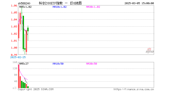 3月5日,科创200ETF指数(588240)跌0.10%,成交额982.24万元。当日份额减少1800.00万份,最新份额为1.47亿份。最新资产净值计算值为1.51亿元。