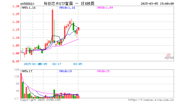 3月5日,科创芯片ETF富国(588810)涨1.22%,成交额1485.47万元。当日份额减少600.00万份,最新份额为6632.40万份,近20个交易日份额增加300.00万份。最新资产净值计算值为7688.28万元。