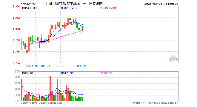 3月5日,上证180指数ETF基金(530680)涨0.30%,成交额2200.65万元。当日份额增加600.00万份,最新份额为8.15亿份,近20个交易日份额减少1.40亿份。最新资产净值计算值为8.17亿元。