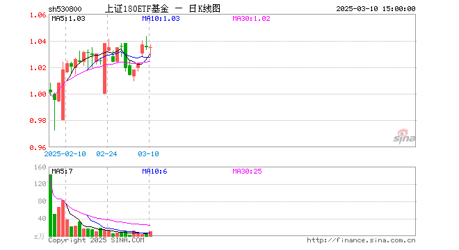 3月10日,上证180ETF基金(530800)涨0.00%,成交额1030.91万元。当日份额减少1000.00万份,最新份额为5620.18万份,近20个交易日份额减少1.64亿份。最新资产净值计算值为5809.58万元。