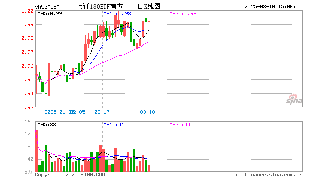3月10日,上证180ETF南方(530580)涨0.10%,成交额2129.74万元。当日份额减少600.00万份,最新份额为5.93亿份,近20个交易日份额减少3.50亿份。最新资产净值计算值为5.87亿元。