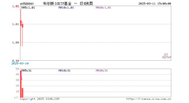 3月11日,科创板50ETF基金(588840)跌0.20%,成交额1575.04万元。当日份额减少600.00万份,最新份额为2.23亿份。最新资产净值计算值为2.25亿元。
