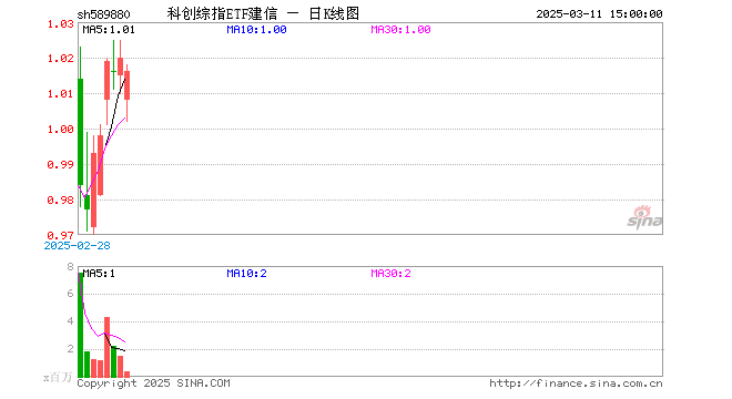 科创综指ETF建信(589880)业绩比较基准为上证科创板综合指数收益率,管理人为建信基金管理有限责任公司,基金经理为葛鲁禹,成立(2025-02-20)以来回报为1.79%。