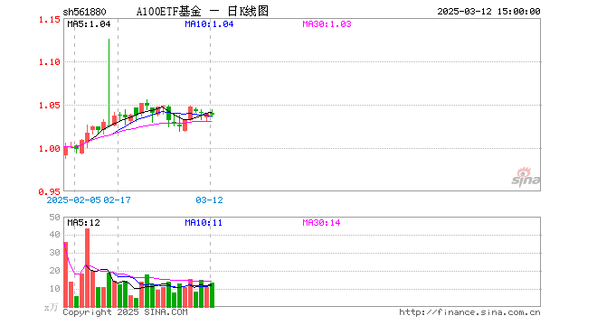 3月12日,A100ETF基金(561880)跌0.19%,成交额1379.27万元。当日份额增加400.00万份,最新份额为4.14亿份,近20个交易日份额增加2.24亿份。最新资产净值计算值为4.30亿元。