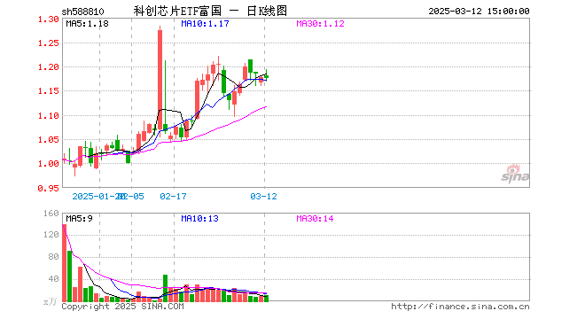 3月12日,科创芯片ETF富国(588810)跌0.17%,成交额1181.72万元。当日份额减少300.00万份,最新份额为6332.40万份,近20个交易日份额增加2700.00万份。最新资产净值计算值为7414.61万元。