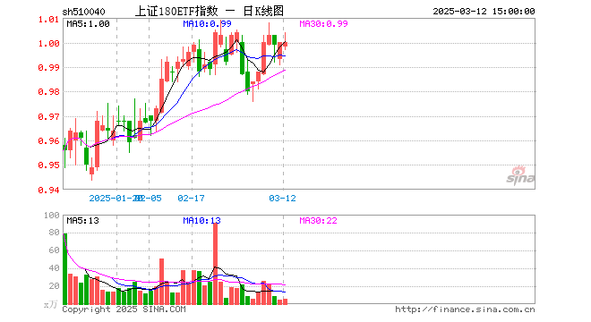 3月12日,上证180ETF指数(510040)涨0.00%,成交额572.77万元。当日份额减少600.00万份,最新份额为2.26亿份,近20个交易日份额减少2.40亿份。最新资产净值计算值为2.26亿元。