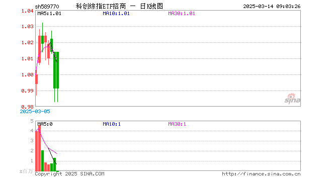 科创综指ETF招商(589770)业绩比较基准为上证科创板综合指数收益率,管理人为招商基金管理有限公司,基金经理为苏燕青、房俊一,成立(2025-02-26)以来回报为-0.89%。