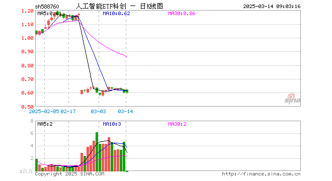 3月13日,人工智能ETF科创(588760)跌3.85%,成交额2.83亿元。当日份额增加2.22亿份,最新份额为19.49亿份,近20个交易日份额增加16.79亿份。最新资产净值计算值为11.66亿元。