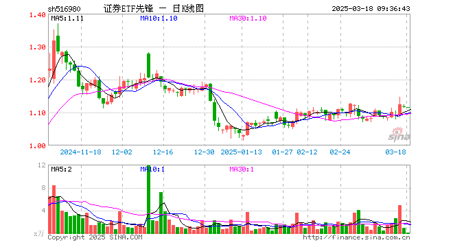 3月18日,证券ETF先锋(516980)开盘涨0.00%,报1.116元。证券ETF先锋(516980)重仓股方面,东方财富开盘涨0.96%,中信证券涨0.36%,海通证券跌100.00%,华泰证券涨0.39%,国泰君安涨0.06%,国信证券涨0.47%,广发证券涨0.38%,申万宏源涨0.39%,中金公司涨0.74%,华创云信涨0.66%。