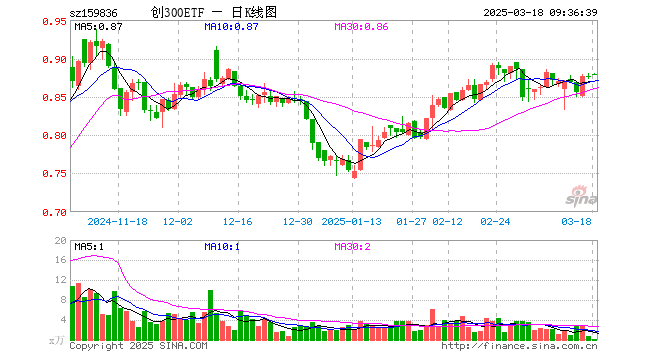 3月18日,创300ETF(159836)开盘涨0.23%,报0.879元。创300ETF(159836)重仓股方面,宁德时代开盘涨0.78%,东方财富涨0.96%,迈瑞医疗涨0.58%,汇川技术涨0.01%,中际旭创跌0.03%,阳光电源涨0.31%,温氏股份跌0.35%,新易盛涨0.00%,亿纬锂能跌0.22%,爱尔眼科涨0.56%。