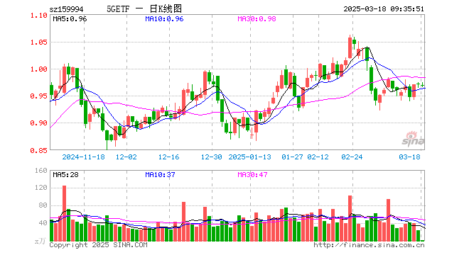 3月18日,5GETF(159994)开盘跌0.10%,报0.969元。5GETF(159994)重仓股方面,立讯精密开盘涨0.10%,中兴通讯涨0.19%,中际旭创跌0.03%,工业富联跌0.19%,新易盛涨0.00%,兆易创新涨0.59%,紫光股份涨0.72%,歌尔股份涨0.26%,沪电股份涨0.08%,中航光电涨0.09%。