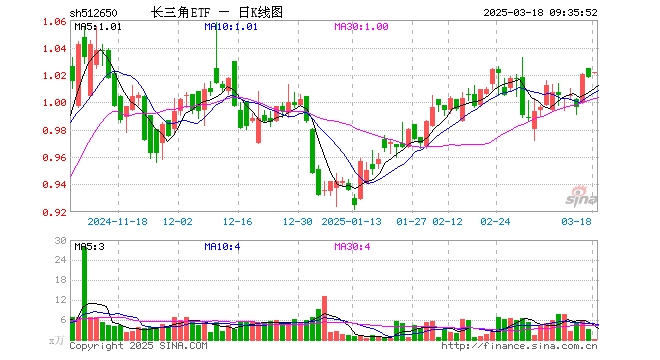 长三角ETF(512650)业绩比较基准为中证长三角一体化发展主题指数收益率,管理人为汇添富基金管理股份有限公司,基金经理为孙浩,成立(2019-07-26)以来回报为1.94%,近一个月回报为1.10%。