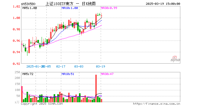 3月19日,上证180ETF南方(530580)跌0.10%,成交额2492.50万元。当日份额减少400.00万份,最新份额为3.19亿份,近20个交易日份额减少4.52亿份。最新资产净值计算值为3.21亿元。
