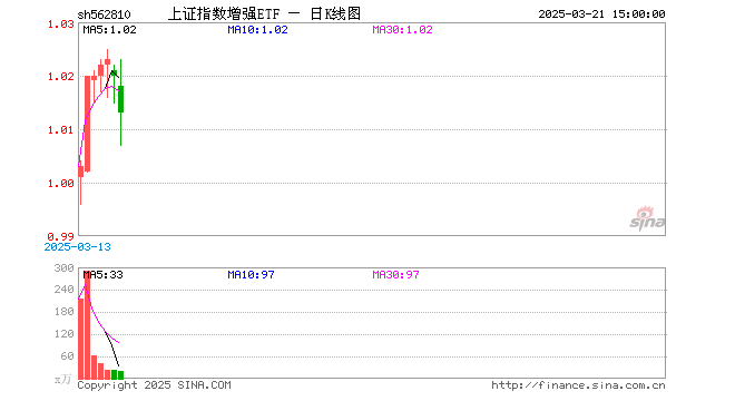 3月21日,上证指数增强ETF(562810)跌0.69%,成交额1947.04万元。当日份额减少3000.00万份,最新份额为2.58亿份。最新资产净值计算值为2.61亿元。