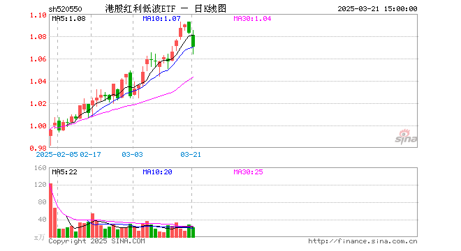 港股红利低波ETF(520550)业绩比较基准为恒生港股通高股息低波动指数收益率(经汇率调整后),管理人为招商基金管理有限公司,基金经理为许荣漫,成立(2025-01-15)以来回报为5.89%,近一个月回报为3.83%。