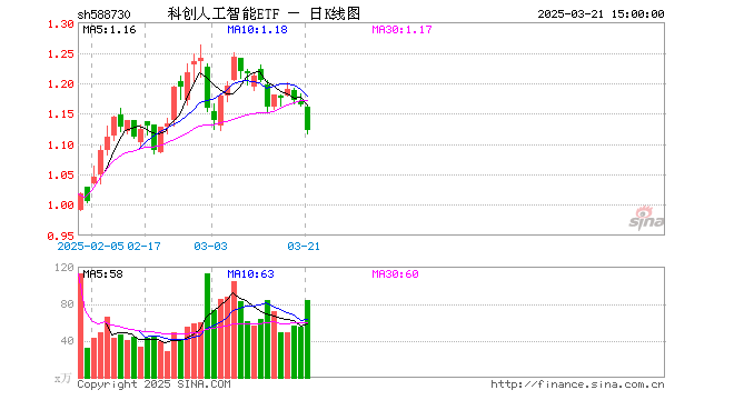 3月21日,科创人工智能ETF(588730)跌3.52%,成交额9568.90万元。当日份额增加3200.00万份,最新份额为3.97亿份,近20个交易日份额增加2.36亿份。最新资产净值计算值为4.46亿元。