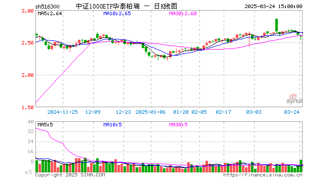 3月24日,中证1000ETF华泰柏瑞(516300)跌1.07%,成交额2436.83万元。当日份额增加800.00万份,最新份额为5701.26万份,近20个交易日份额增加0.00份。最新资产净值计算值为1.48亿元。