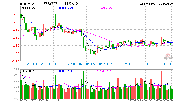 3月24日,券商ETF(159842)跌0.09%,成交额9765.54万元。当日份额增加1500.00万份,最新份额为18.57亿份,近20个交易日份额增加7900.00万份。最新资产净值计算值为19.53亿元。