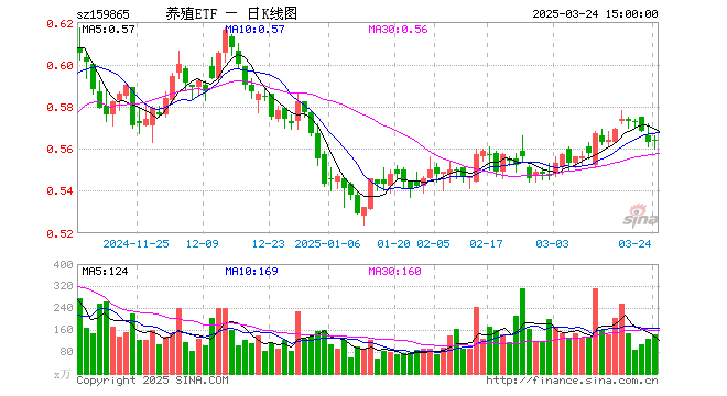 3月24日,养殖ETF(159865)涨0.18%,成交额8172.18万元。当日份额减少5600.00万份,最新份额为57.63亿份,近20个交易日份额增加4500.00万份。最新资产净值计算值为32.57亿元。