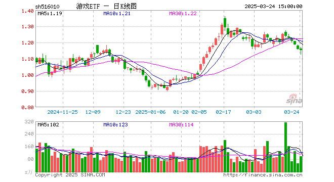 3月24日,游戏ETF(516010)跌0.60%,成交额1.11亿元。当日份额减少400.00万份,最新份额为14.28亿份,近20个交易日份额增加4.56亿份。最新资产净值计算值为16.47亿元。
