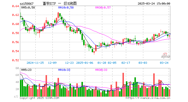 3月24日,畜牧ETF(159867)涨0.17%,成交额1152.48万元。当日份额减少50.00万份,最新份额为10.78亿份,近20个交易日份额减少4150.00万份。最新资产净值计算值为6.19亿元。