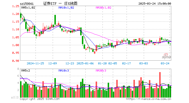 3月24日,证券ETF(159841)跌0.10%,成交额3.20亿元。当日份额增加1.20亿份,最新份额为65.13亿份,近20个交易日份额增加5.98亿份。最新资产净值计算值为65.57亿元。