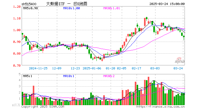 3月24日,大数据ETF(515400)跌1.16%,成交额1.80亿元。当日份额增加3600.00万份,最新份额为20.08亿份,近20个交易日份额增加2.55亿份。最新资产净值计算值为18.82亿元。