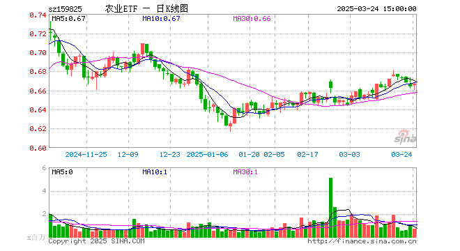 3月24日,农业ETF(159825)涨0.45%,成交额4812.40万元。当日份额减少1100.00万份,最新份额为28.21亿份,近20个交易日份额减少1.50亿份。最新资产净值计算值为18.82亿元。