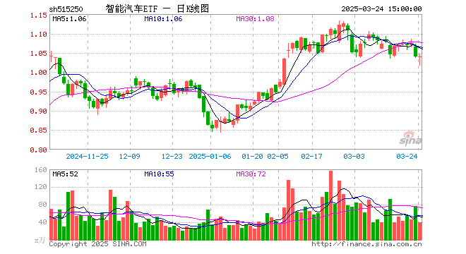 3月24日,智能汽车ETF(515250)涨0.10%,成交额4188.91万元。当日份额增加100.00万份,最新份额为8.24亿份,近20个交易日份额减少6000.00万份。最新资产净值计算值为8.56亿元。