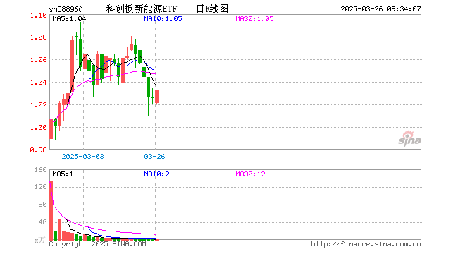 3月26日,科创板新能源ETF(588960)开盘跌0.49%,报1.021元。科创板新能源ETF(588960)重仓股方面,晶科能源开盘跌0.29%,天合光能跌0.56%,阿特斯跌0.20%,天奈科技涨0.12%,大全能源跌0.25%,容百科技跌0.21%,孚能科技涨0.21%,厦钨新能涨0.00%,聚和材料跌1.04%,中信博跌0.37%。