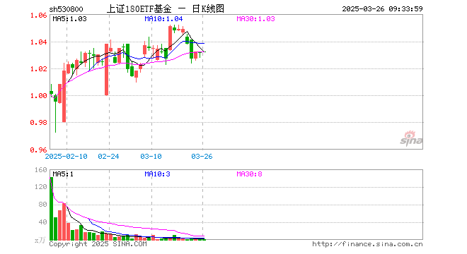 3月26日,上证180ETF基金(530800)开盘涨0.10%,报1.032元。上证180ETF基金(530800)重仓股方面,贵州茅台开盘跌0.17%,中国平安涨0.04%,招商银行跌1.31%,紫金矿业涨1.63%,恒瑞医药涨2.96%,长江电力涨0.00%,中芯国际涨0.37%,京沪高铁涨0.00%,药明康德涨0.00%,兴业银行跌0.32%。