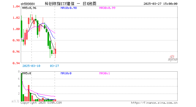 科创综指ETF建信(589880)业绩比较基准为上证科创板综合指数收益率,管理人为建信基金管理有限责任公司,基金经理为葛鲁禹,成立(2025-02-20)以来回报为-3.61%,近一个月回报为-6.30%。