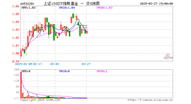 3月27日,上证180ETF指数基金(530280)涨0.29%,成交额96.86万元。当日份额增加450.00万份,最新份额为3593.40万份,近20个交易日份额增加1950.00万份。最新资产净值计算值为3698.69万元。