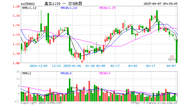 中证A100指数ETF(159661)业绩比较基准为中证A100指数收益率,管理人为嘉实基金管理有限公司,基金经理为李直,成立(2023-11-23)以来回报为12.86%,近一个月回报为-1.04%。