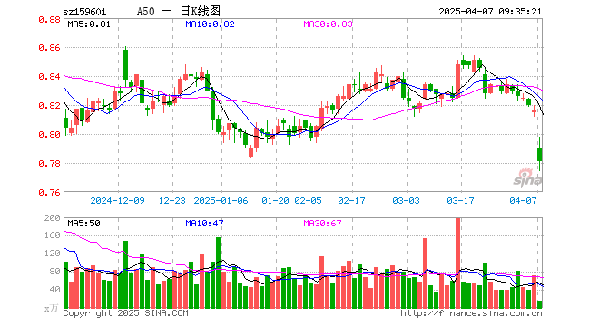 4月7日,A50ETF(159601)开盘跌3.19%,报0.790元。A50ETF(159601)重仓股方面,宁德时代开盘跌6.99%,贵州茅台跌3.11%,紫金矿业跌9.99%,海光信息跌4.56%,招商银行跌4.01%,长江电力跌1.27%,立讯精密跌9.99%,万华化学跌4.47%,比亚迪跌6.76%,工业富联跌9.97%。