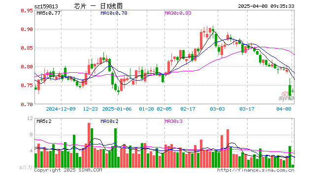 4月8日,半导体ETF(159813)开盘涨1.66%,报0.734元。半导体ETF(159813)重仓股方面,中芯国际开盘涨0.00%,海光信息涨1.13%,寒武纪涨1.74%,北方华创涨1.20%,韦尔股份涨1.56%,中微公司涨0.00%,澜起科技涨0.76%,兆易创新涨1.59%,长电科技涨0.00%,紫光国微涨1.39%。