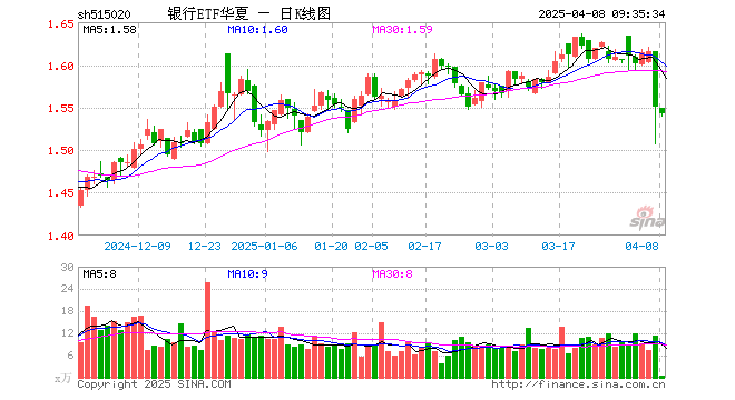4月8日,银行ETF华夏(515020)开盘跌0.06%,报1.549元。银行ETF华夏(515020)重仓股方面,招商银行开盘跌0.12%,兴业银行涨0.00%,工商银行跌0.89%,交通银行涨0.00%,农业银行跌0.20%,江苏银行跌0.43%,浦发银行涨1.24%,中国银行跌0.74%,平安银行跌0.19%,民生银行涨0.00%。
