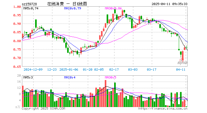 在线消费ETF(159728)业绩比较基准为国证在线消费指数收益率,管理人为南方基金管理股份有限公司,基金经理为崔蕾,成立(2021-12-29)以来回报为-23.91%,近一个月回报为-16.88%。